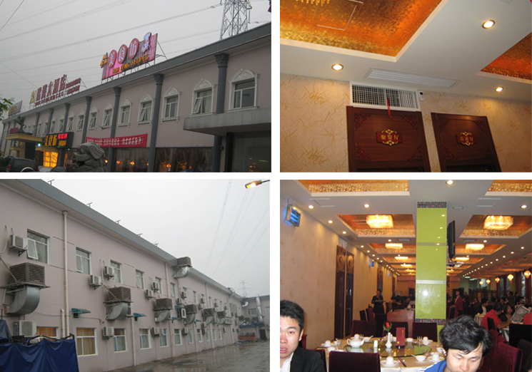 二、顾客用餐环境:在投入传统空调制冷的同时,在配合佳锋环保空调、把室外新鲜的凉风输送到酒店内部,解决了传统空调不能开窗、空气不流通、异味不能排出去的特点,又加强了降温效果、一举多得。